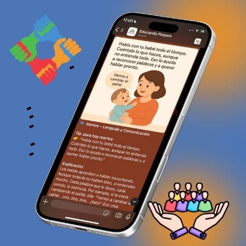 UD. hará parte de una comunidad privada en whatsApp, en ese grupo estamos compartiendo tips, de estimulación temprana para peques.