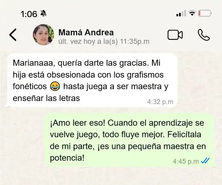 Los niños pequeños no aprenden bajo presión. Aprenden cuando juegan, cuando exploran y cuando se sienten seguros. Por eso, cuando el aprendizaje se adapta a su ritmo, los avances empiezan a notarse sin frustración. Grafismo Fonético fue creado con ese objetivo: ayudar a los niños de 1 a 6 años a reconocer letras, sonidos y formar palabras de manera natural y divertida. No necesitas ser maestra ni tener experiencia. Solo dedicar 10 minutos al día para acompañar a tu hijo con un método pensado para él.